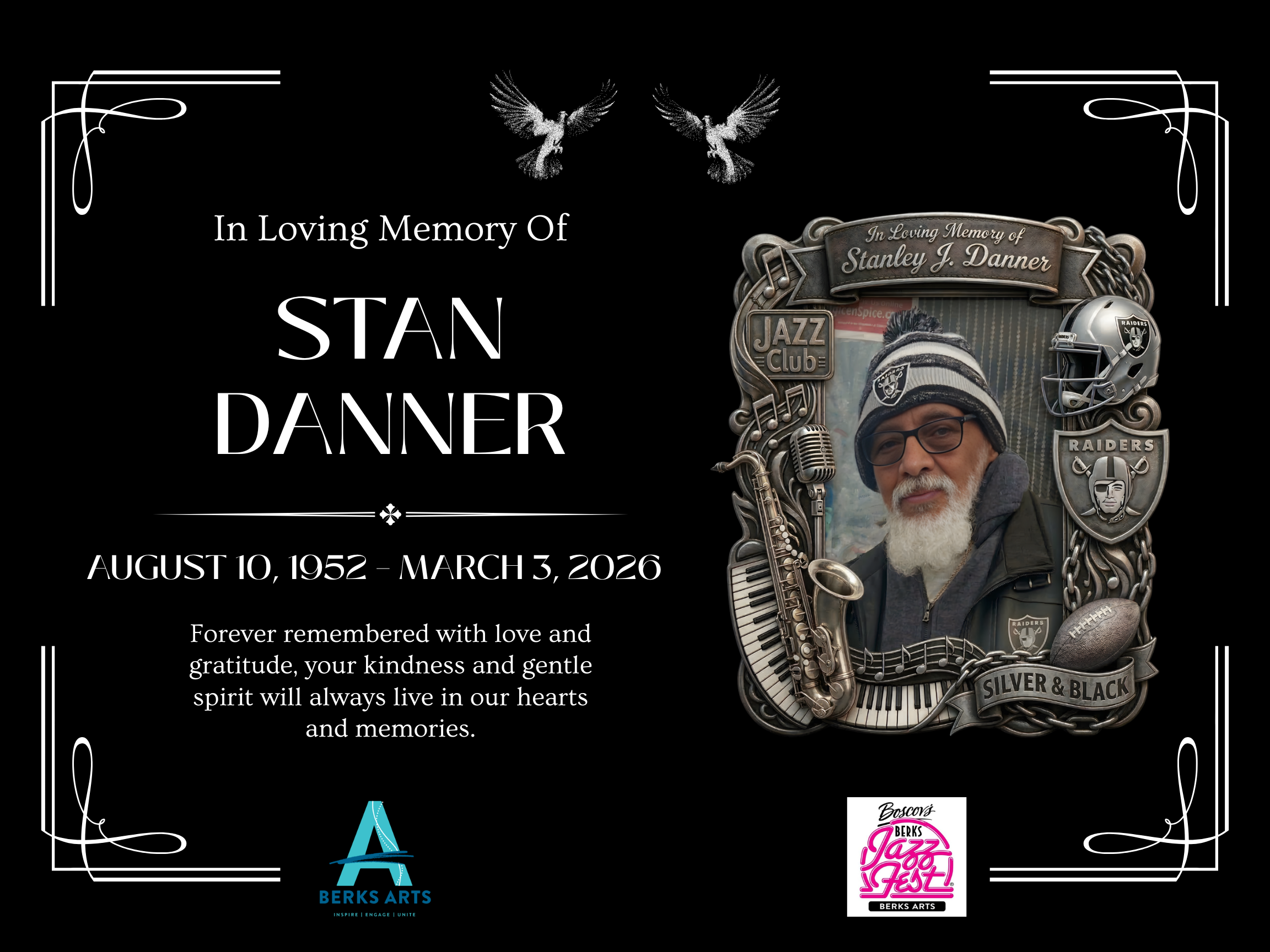 In memory of Stan Danner, a cherished Berks Jazz Fest volunteer whose warmth, joy, and laughter touched every corner of the festival, we invite you to make a charitable donation in their honor. Their spirit lives on in the music, the community, and the countless lives they brightened each year.